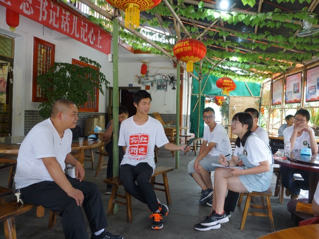 9日下午,实践团来到绥阳县的一处农民讲习所刘公岛。讲习所的召集人刘学早年曾在西藏服役,后回到家乡自主创业,并积极推进党的方针政策在群众的传播工作。在实践团的采访过程中,刘学从自己的实际经历和身边的小事出发,回忆了自己的早年服役和回乡创业的经历,阐述了对共产党的理解和认识,表达了对党的感恩之情。他特别强调了自己对十九大提出的建设美丽中国理念的理解和支持,并以自己所处的湿地公园为例,讲述了近年来国家对民生与环保方面的重视和努力,以及给当地带来的巨大影响。