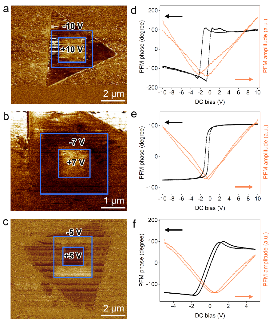 图4.不同厚度CuCrSe2纳米片(32.8 nm,18.2 nm和5.2 nm)中极化反转