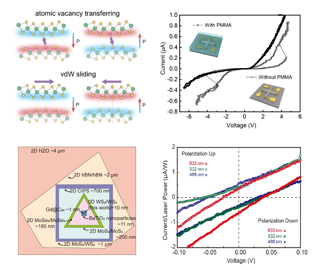 图:零维滑移铁电效应的机制验证和光伏响应