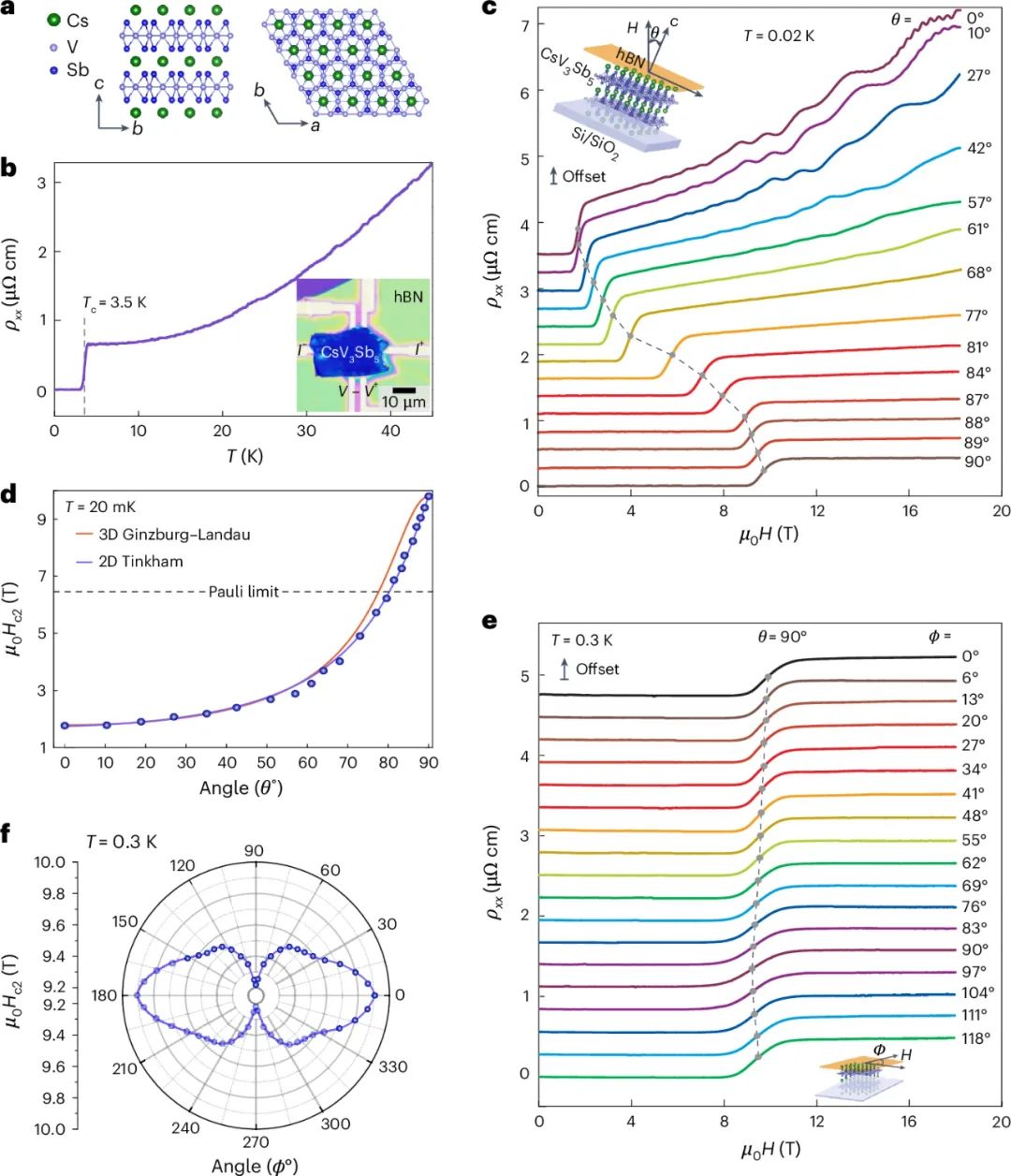图1.CsV₃Sb₅中的二维及二重对称性超导电性