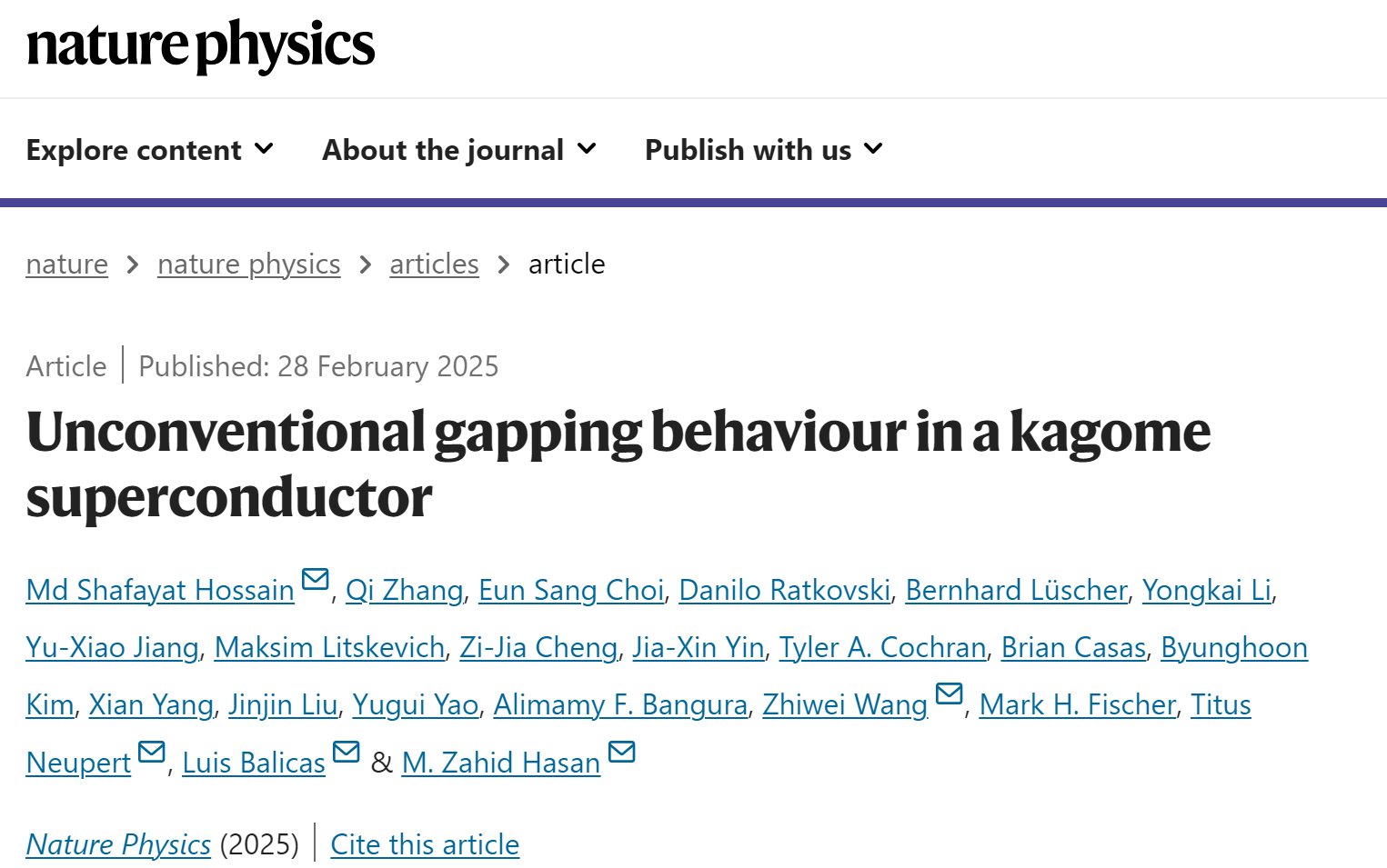 近日,必威西汉姆联王秩伟教授、姚裕贵教授团队与普林斯顿大学M.Z.Hasan团队合作在新型笼目晶格超导体CsV₃Sb₅中取得重要进展。通过多种高精度测量技术发现了CsV₃Sb₅两种截然不同的超导状态,揭示了其复杂的多能隙特性。这一成果为理解超导材料中电子行为的多样性提供了关键线索,相关研究成果以“Unconventional gapping behaviour in a kagome superconductor”为题发表在《Nature Physics》上。必威西汉姆联博士后李永恺(现为北理工长三角研究院副研究员)为论文共同第一作者,王秩伟教授为共同通信作者。