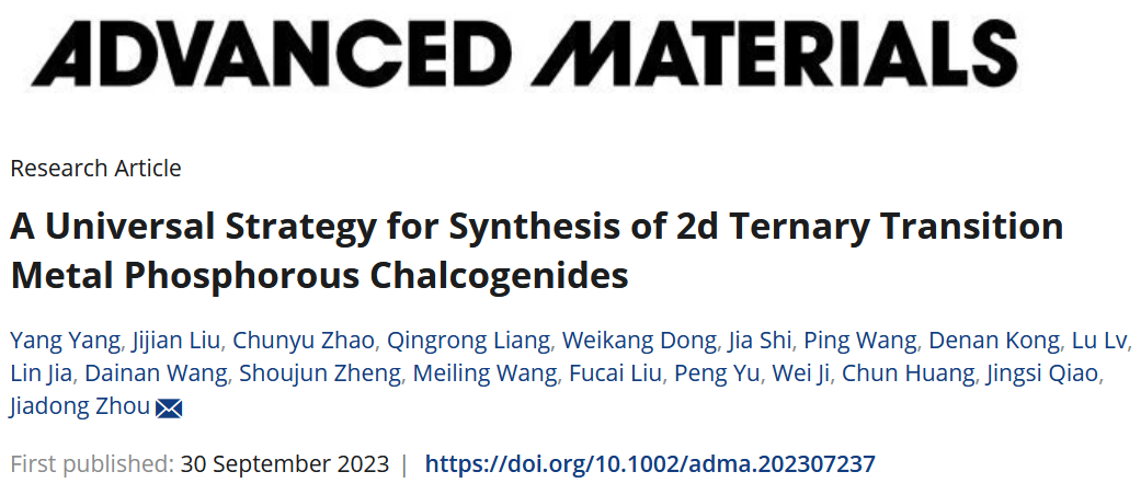 文章DOI:https://onlinelibrary.wiley.com/doi/10.1002/adma.202307237