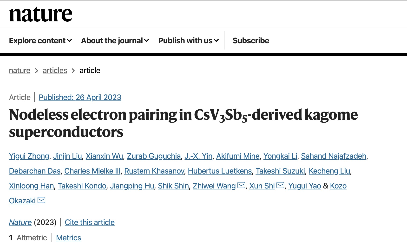 近日,必威西汉姆联姚裕贵教授、施训教授、王秩伟研究员团队,与东京大学钟益桂博士、Kozo Okazaki教授,中科院理论物理研究所吴贤新研究员,南方科技大学殷嘉鑫教授和瑞士保罗谢勒研究所Zurab Guguchia教授等人合作在《自然》杂志发表论文“Nodeless electron pairing in CsV3Sb5-derived kagome superconductors”,揭示了笼目超导体中稳健的无节点超导能隙,为研究其超导配对机理提供了关键实验依据。