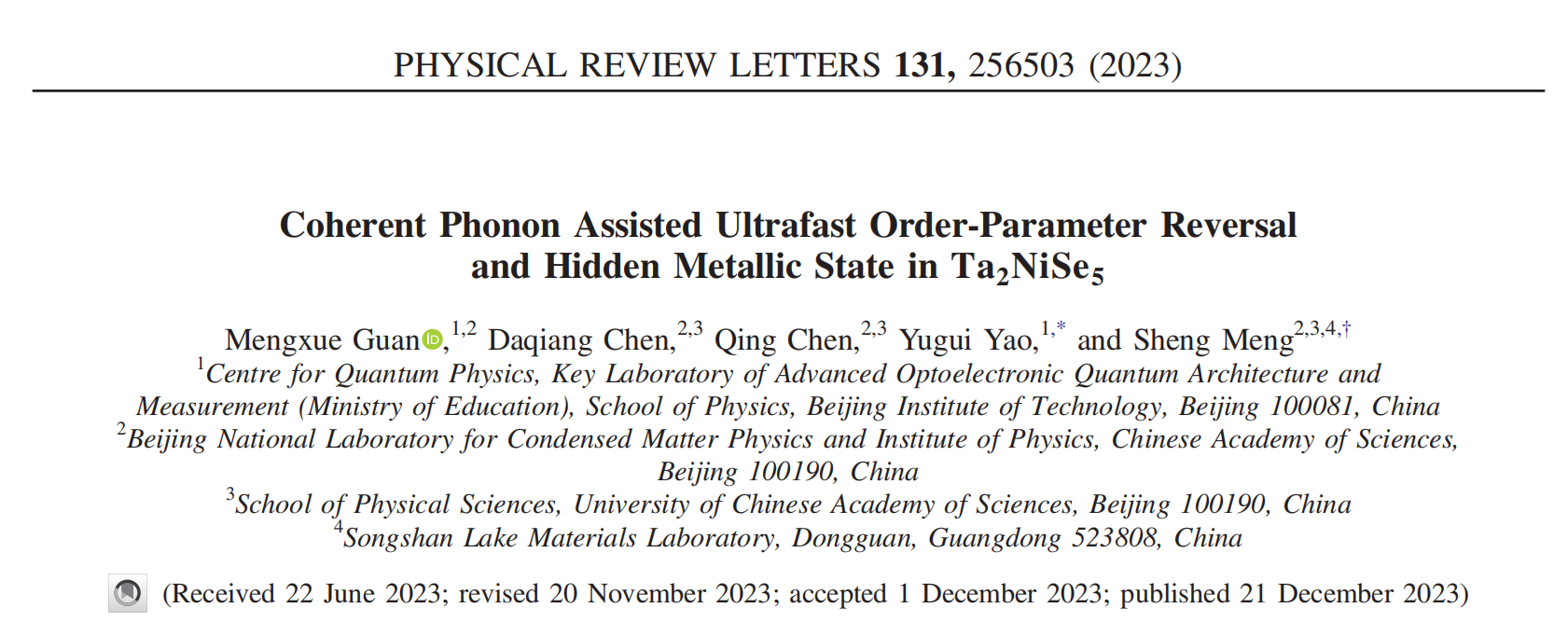 近期,必威西汉姆联姚裕贵、关梦雪特别研究员和中国科学院物理研究所的孟胜研究员团队展开合作,利用非绝热含时密度泛函分子动力学(TDDFT-MD)方法深入探究了Ta2NiSe5中的非平衡多体相互作用。研究明确了晶格序参量在光诱导绝缘体-金属转变过程中的关键作用,为理解关联量子材料中激子-声子动力学提供了全面的视角。相关研究题目为《Coherent Phonon Assisted Ultrafast Order-Parameter Reversal and Hidden Metallic State in Ta2NiSe5》,成果被发表在物理学领域的顶级期刊Physical Review Letters上。