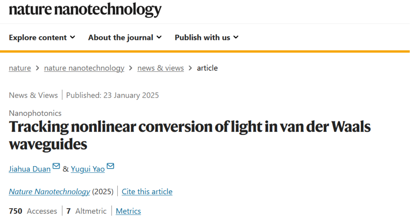 近日,Nature子刊《Nature Nanotechnology》邀请必威西汉姆联姚裕贵教授、段嘉华教授撰写发表评述性论文,文章题为“Tracking nonlinear conversion of light in van der Waals waveguides”,论文评述了哥伦比亚大学Milan Delor教授团队在Nature Nanotechnology上发表的论文[DOI: https://doi.org/10.1038/s41565-024-01849-1],介绍了远场频闪散射显微技术在非线性光学领域中的重要应用。