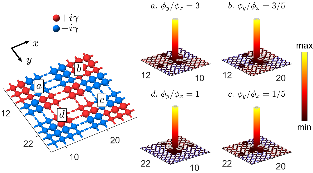 图2设计增益损耗的分布,可以在二维体系内不同位置诱导出角态。