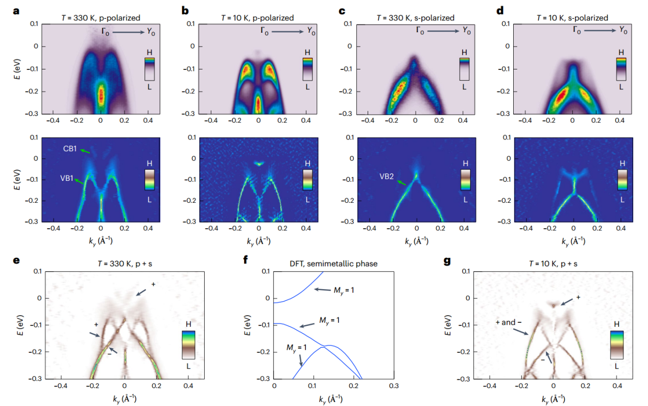 图2. Ta₂Pd₃Te₅低温电子相中,带间杂化和镜像对称破缺的特征.