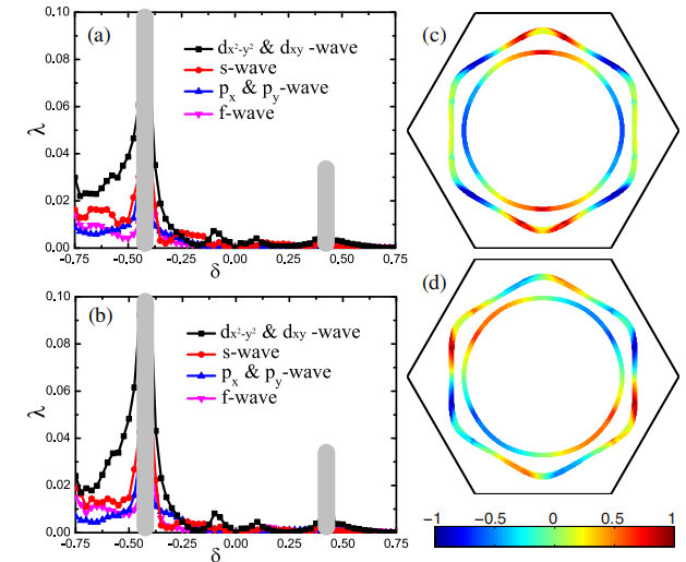 图2 材料包括磁性和超导的相图,以及超导能隙函数