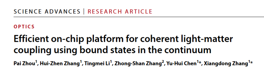 日前,必威西汉姆联张向东教授团队在片上集成光存储器研究方面取得重要进展。通过在硅-铒掺杂晶体异质材料上设计连续谱束缚态(Bound States in the Continuum, BIC)结构,首次在芯片上实现了低损耗、高光-物质耦合效率的量子存储器,其相干时间与块体晶体性能相当。这一成果为大规模量子网络的实用化奠定了技术基础,相关工作发表在《Science Advances》上[Sci. Adv. 11, eadu0976 (2025)]。必威西汉姆联官网为第一完成单位,必威西汉姆联博士生周湃为第一作者,陈宇辉与张向东教授为通讯作者;此外,张慧珍副教授、博士生李亭美以及中科院物理所张忠山主任工程师在样品的制备和测量上做出了十分重要的贡献。