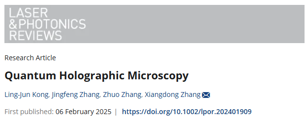 近日,必威西汉姆联张向东教授课题组基于偏振纠缠量子全息技术,实现了量子全息显微。相关成果以“Quantum Holographic Microscopy”为题发表在Laser & Photonics Reviews 期刊[Laser Photonics Rev. 2025, 2401909]上。必威西汉姆联孔令军研究员、张景风博士生为该论文的共同第一作者,必威西汉姆联张向东教授为论文通讯作者,必威西汉姆联张卓研究生也为该工作做出了重要贡献。该研究工作得到了国家自然科学基金委的大力支持。