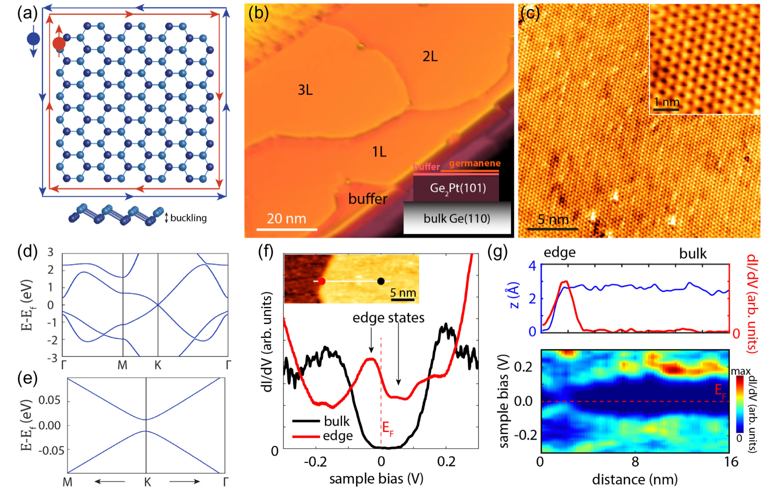 图1. 锗烯样品形貌及其体能隙和拓扑边缘态
