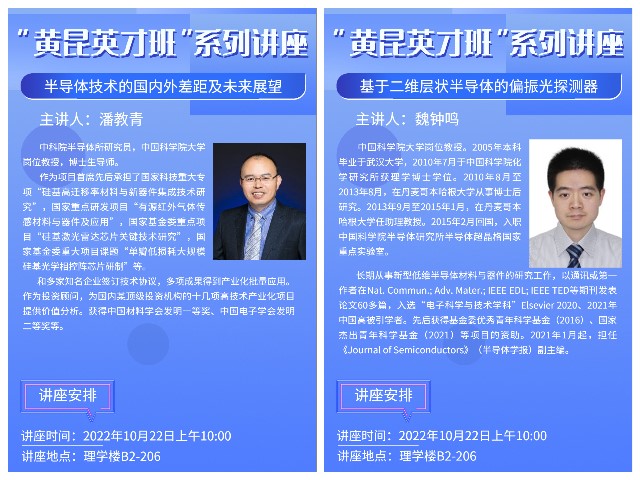 本学期由必威西汉姆联和材料学院组织,半导体所选派优秀教师,面向黄昆班学生开设了系列科技前沿讲座。