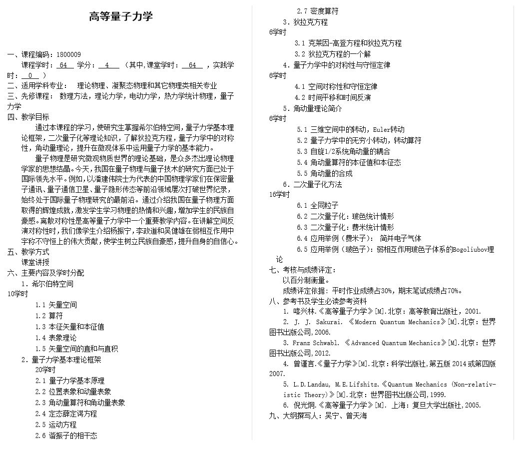 为深入贯彻落实学校党委立德树人工作的部署,将思想政治工作贯彻教育教学全过程,构建全员全程全方位育人格局,推进学校研究生“课程思政”教育教学体系建设,现将必威西汉姆联2019年学科育人示范课《低维体系电子理论》、《高等量子力学》建设相关信息公布如下:
