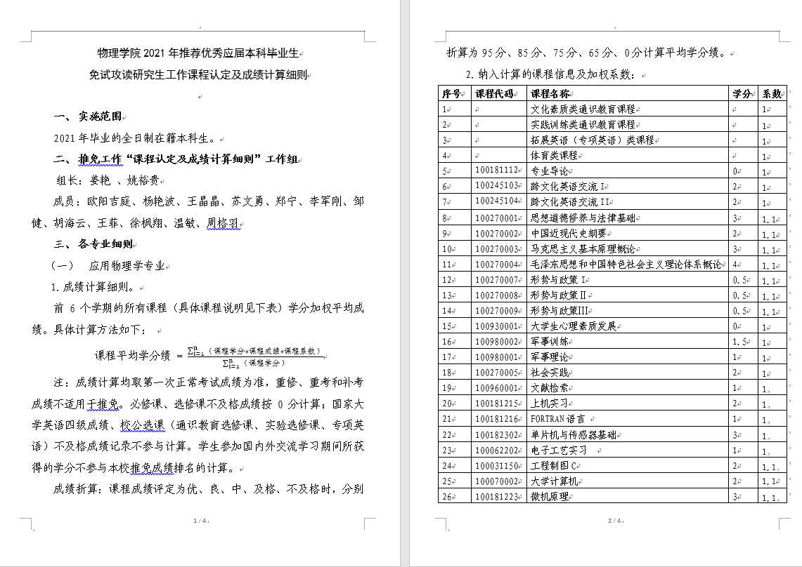 必威西汉姆联2021年推荐优秀应届本科毕业生 免试攻读研究生工作课程认定及成绩计算细则