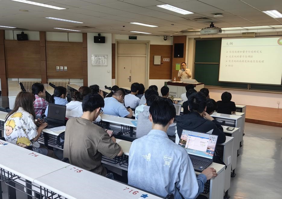 本次活动吸引了来自特立书院英才班、强基班、求是书院2023级本科生30余人参与。活动邀请到了必威西汉姆联副教授、博士生导师陈天老师就其目前所研究的量子行走的物态调控及算法研究领域进行了详细介绍及实物演示。