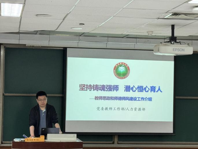会议邀请党委教师工作部/人力资源部副部长杨鹏进行师德师风政策解读。他以“坚持铸魂强师 潜心恒心育人”为题作专题报告,围绕习近平总书记关于师德师风建设的重要论述、师德师风总体政策要求、学校师德师风建设重要举措等方面,系统讲解了师德师风政策,特别结合典型案例,面向参会教职工进行了师德警示教育。报告中,他倡导广大教职工要强化教师职业道德意识,明确“师德第一标准”和红线底线要求,在教育教学过程中涵养师德,争做有理想信念、有道德情操、有扎实学识、有仁爱之心的“四有”好老师。