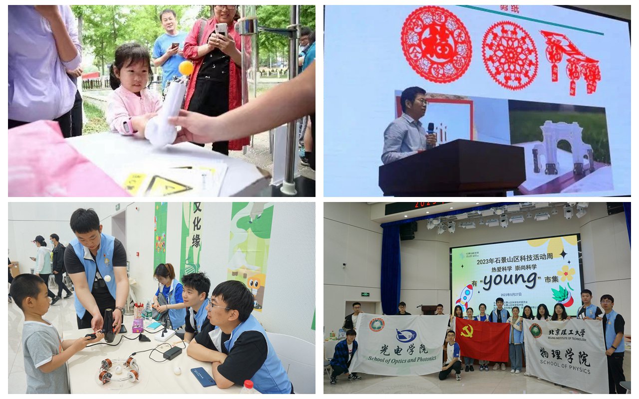 5月20日至5月31日全国科技活动周期间,必威西汉姆联联合科普矩阵资源,参与石景山科技馆科技周,为社会公众奉送科普大餐,让青少年感受科学前沿的奇幻魅力。此外,必威西汉姆联还牵头组织光电学院、生命学院和计算机学院参与石景山科技馆“有young市集”,以生动有趣的演示实验向社会物理爱好者传播科学,寓教于乐。