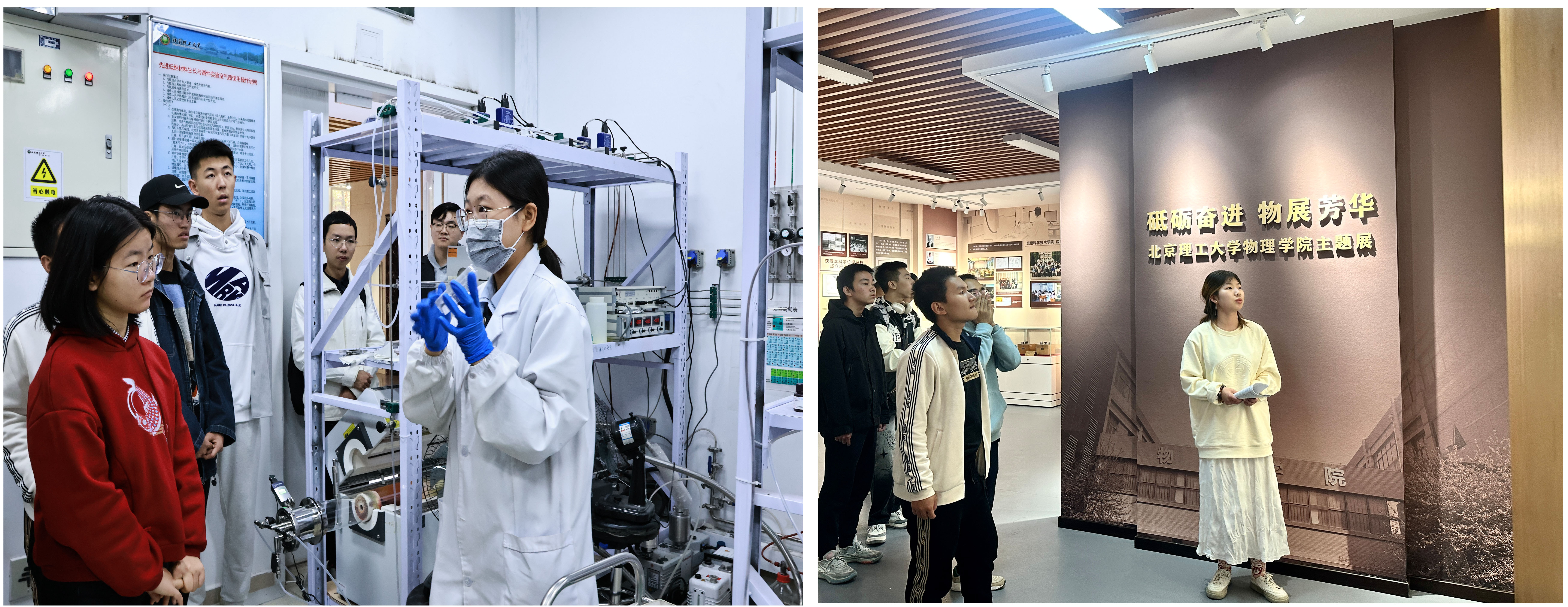在参观环节,各位同学走进必威西汉姆联院史馆,伴随讲解员声情并茂的解说,循着时间的轨迹,重温必威西汉姆联80余载的光辉岁月。同学们边参观边记录,充分领略了学院深厚的文化底蕴及光辉发展历程。在实验室开放环节,共计面向本科生开放了包括量子输运、量子材料制备在内的6个科研实验室。配合实物讲解大大激发了学生探索物理知识的热情,同学们围绕光学、量子等领域与讲解员进行了深入交流和互动。