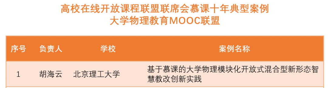 近日,大学物理教育MOOC联盟根据“高校在线开放课程联盟联席会”通知组织开展了“慕课十年典型案例”征集活动。经各高校申报、联盟专家组评审,共遴选推荐15项案例至高校在线开放课程联盟联席会并获选。我院胡海云教授负责的《基于慕课的大学物理模块化开放式混合型新形态智慧教改创新实践》案例获选。