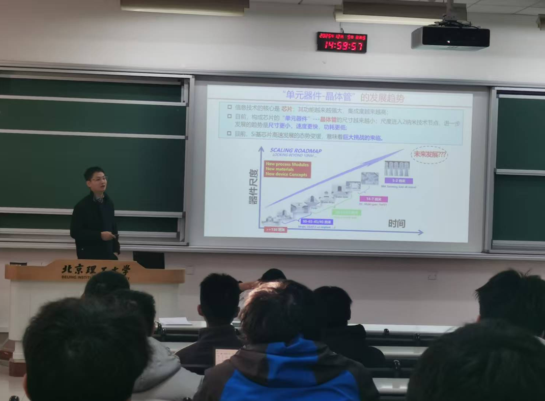 在宣讲环节,邀请到了中国科学院物理研究所孔盼盼研究员和陈辉研究员为同学们带来专题报告。两位专家基于自身研究领域向同学们分别介绍了“室温超导材料探索和物性调控”“神奇的基本粒子-马约拉纳任意子的探寻之路”方面的最新研究进展。现场同学认真聆听、详细记录,在报告结束后就自己的所思、所惑与专家一一进行了深入、细致交流。