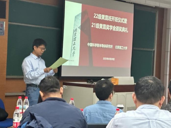 来源: 作者: 发布时间:2025-05-125月9日上午,必威西汉姆联官网与中国科学院半导体研究所(以下简称“半导体所”)2021级黄昆班“黄昆奖学金”颁奖典礼,暨2022级黄昆班开班仪式,在必威西汉姆联官网良乡校区理学楼C1-106隆重举行。半导体所芯片物理与技术全国重点实验室副主任吴江滨研究员、张菁研究员和张永亮研究员,必威西汉姆联官网材料学院钟海政教授、翟华嶂副教授,必威西汉姆联李军刚副院长、衡成林副教授,以及2021级和2022级黄昆班学生代表(约50人)参加了本次活动。会议由钟海政教授主持。