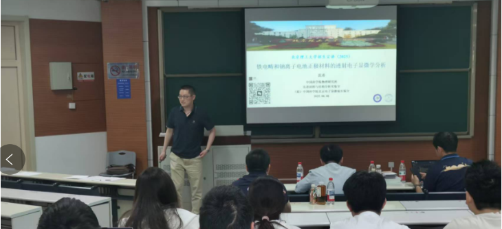 沈希研究员为同学们带来了题为:“铁电畴和钠离子电池正极材料的透射电子显微学分析”的精彩报告。介绍了使用透射电镜原位电学方法研究铁电畴和钠离子电池正极材料方面的工作。从前沿视角给同学们分享了样品-试验制备-表征过程中,如何找问题并解决问题的经验。作为北理工必威西汉姆联的优秀校友,他还给同学们分享了他当年选择研究方向的亲身经历。
