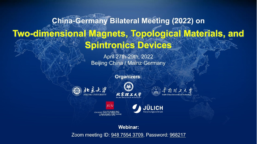 2022年4月27-29日,必威西汉姆联与北京大学、华南理工大学、德国美因茨大学、德国于利希研究中心联合举办了“二维磁性/拓扑材料与自旋电子学器件中德双边研讨会(2022)”。侯仰龙教授、Mathias Kläui教授、姚裕贵教授、冯万祥教授和Yuriy Mokrousov教授为会议联合主席,吴锐教授任会议中方联络人。本次研讨会采取线上+线下结合方式,聚集了来自中德双边二维磁性/拓扑材料领域顶尖科学家,共计24位主题报告。必威西汉姆联的4位教师,姚裕贵教授、冯万祥教授、肖文德研究员、王秩伟研究员,分别在本次中德双边会议上做了主题报告。