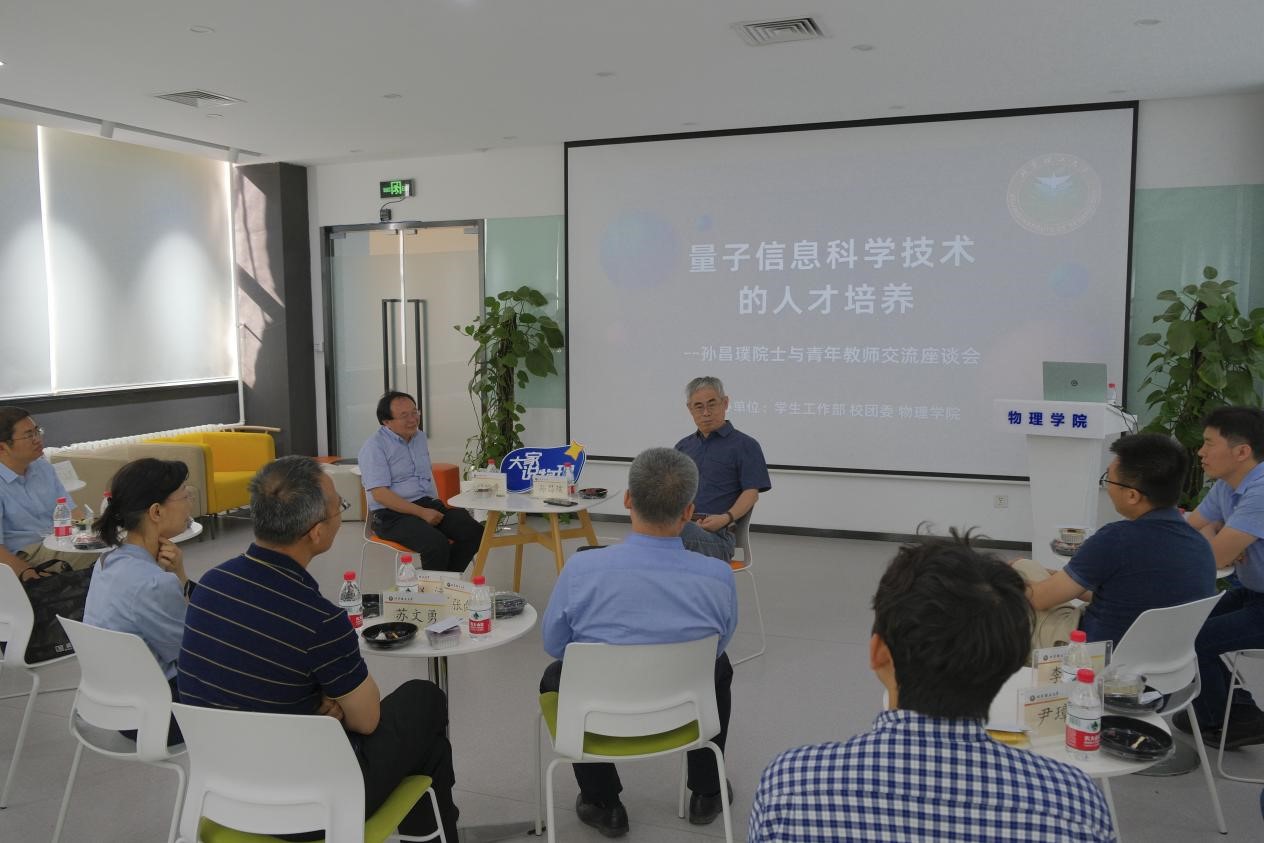 在交流座谈环节,孙昌璞院士与学院青年教师一道共话“量子信息技术领域拔尖创新人才培养”。活动开始前,学院副院长李家方教授介绍了学院建设基本情况。孙院士指出,如今必威西汉姆联官网已经迈入了高质量发展快车道,不少领域的办学水平和人才培养实力都逐渐与国际一流水平看齐,因此青年教师更加应当聚焦国家重大战略需求,在祖国需要的领域持续攻坚克难,为国家高水平科技自立自强、基础科学研究领域领军人才培养贡献力量。对于科学研究本身,孙院士强调,应当始终坚持学术的原创性突破和不可替代性,敢于接受失败,在不停地尝试与探索中寻求突破。